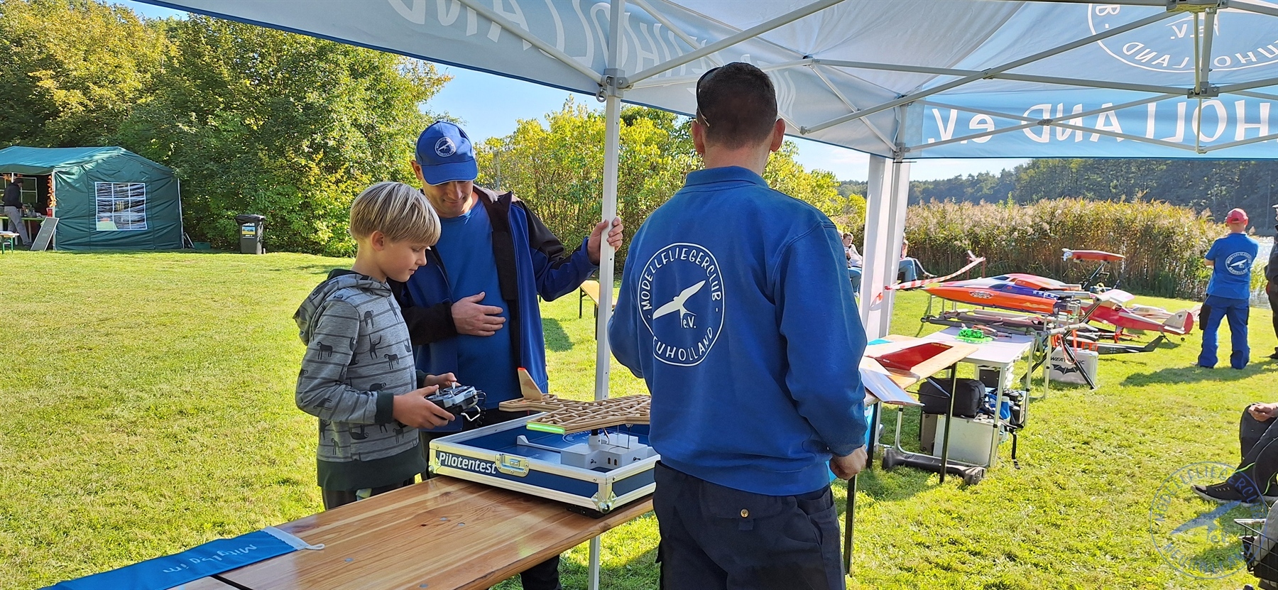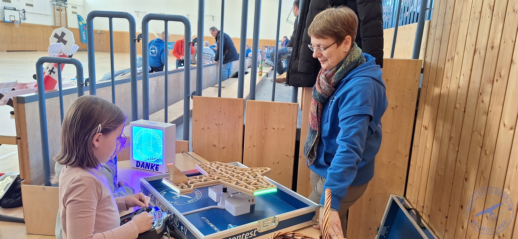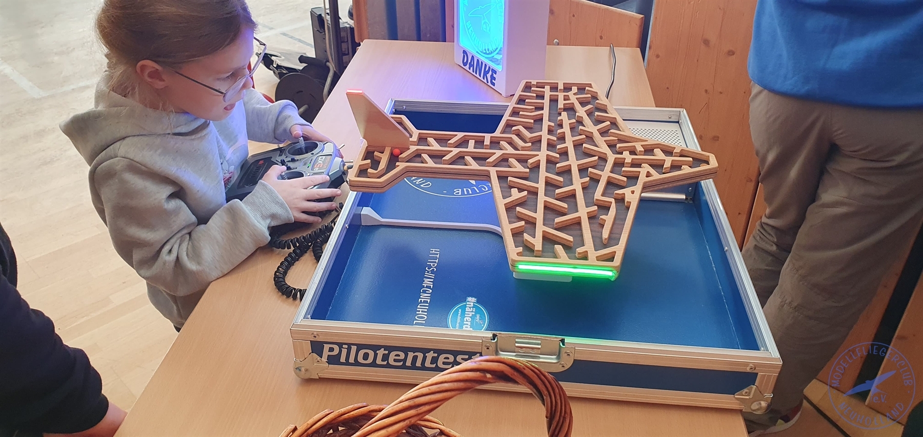 Großen Andrang gab es auch beim Modellflugsimulator, an dem man virtuell abheben konnte, sowie beim beliebten „Pilotentest“: Hier galt es, eine Kugel geschickt durch ein Labyrinth in Form eines Flugzeugs zu manövrieren – Geschicklichkeit und Geduld waren gefragt!